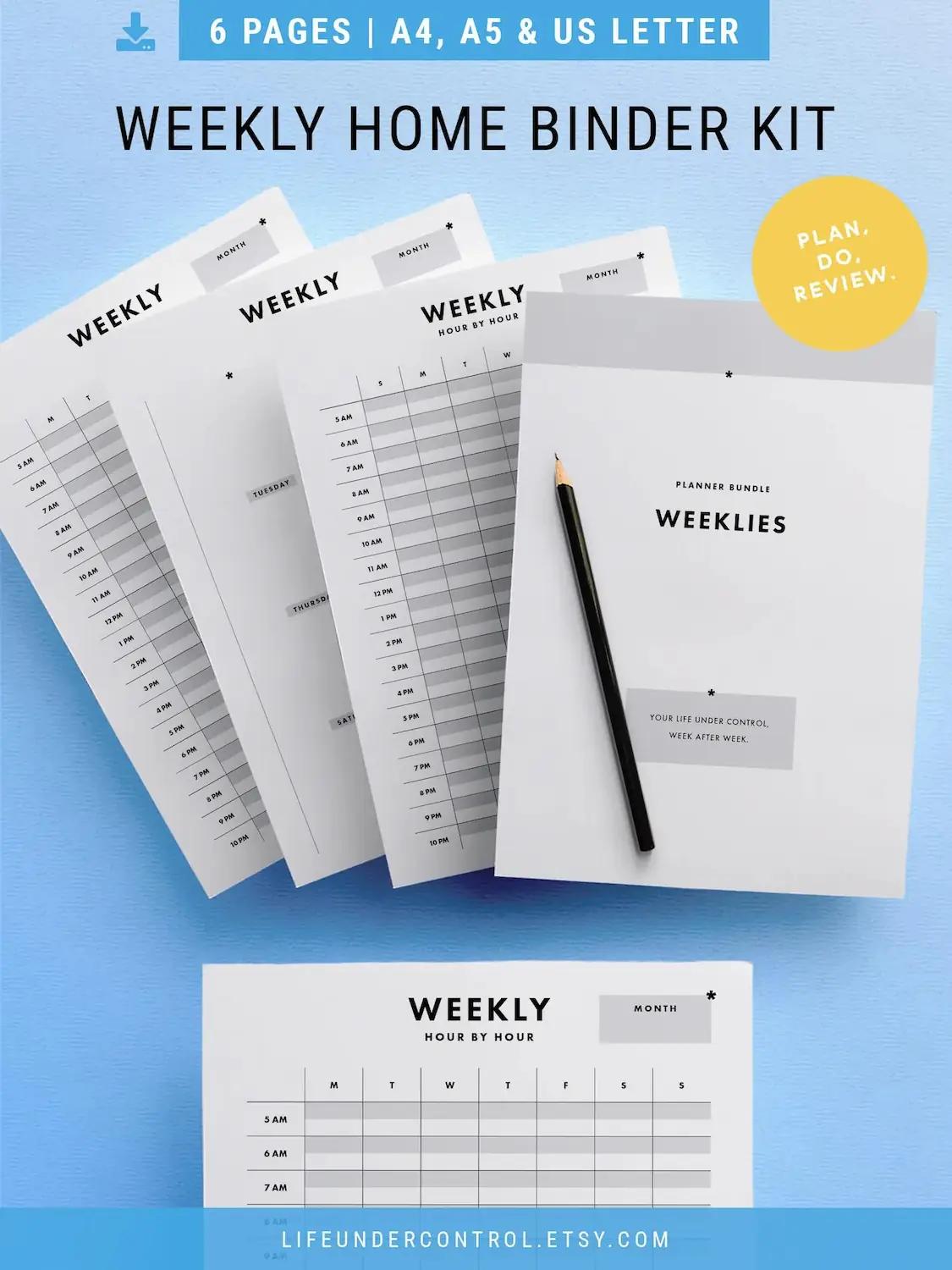 Get your Weekly Home Binder Kit for maximum productivity! Get organized with the daily hourly planne
