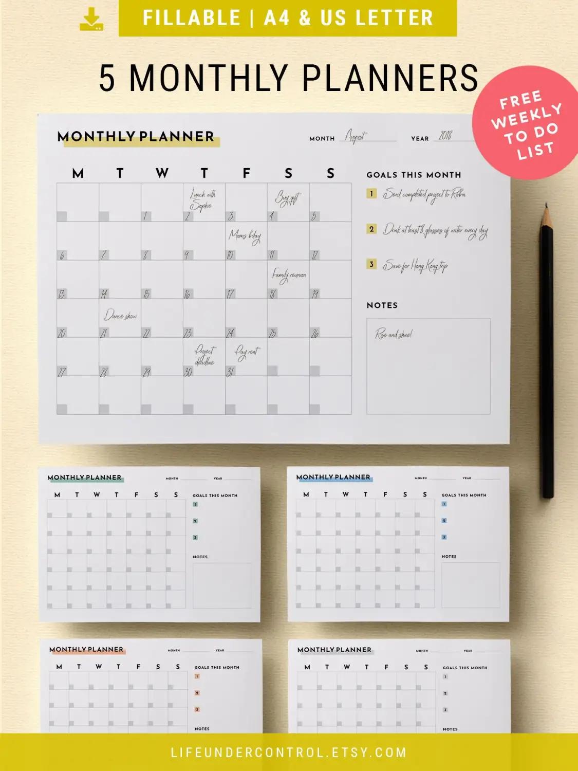 Get your Planner Essentials printables pack and set goals daily, weekly, monthly, and yearly. 18 pag