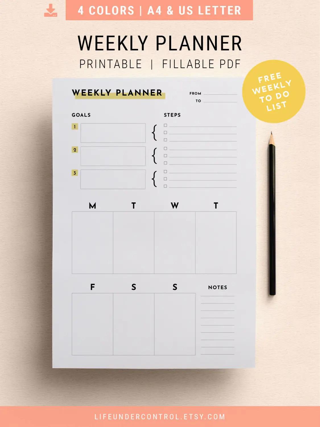 Get things done with this undated weekly planner. Track your goals and break them down into actionab