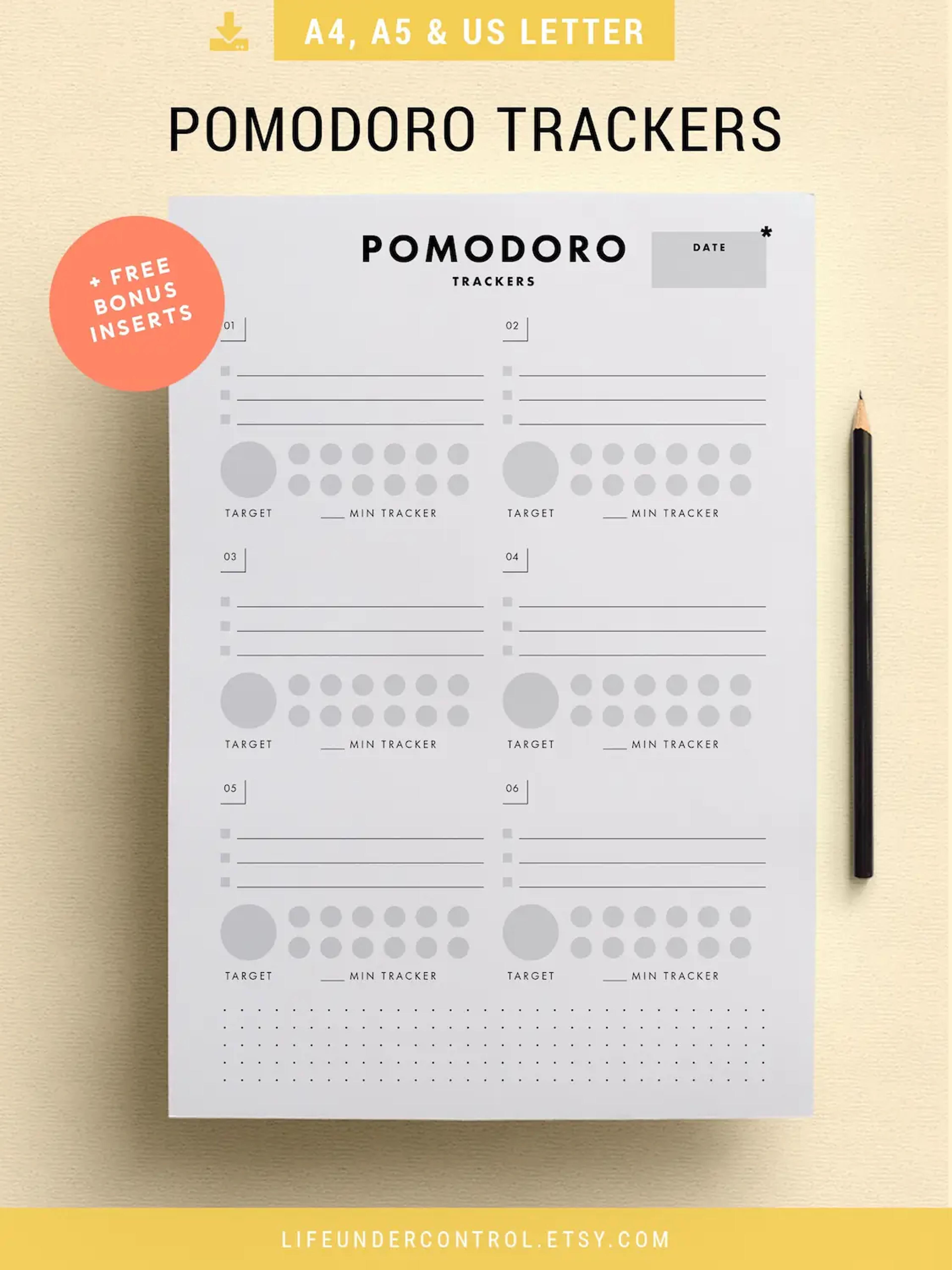 Stay on top of your To-do list with this Pomodoro Trackers Printable. Thanks to the proven Pomodoro