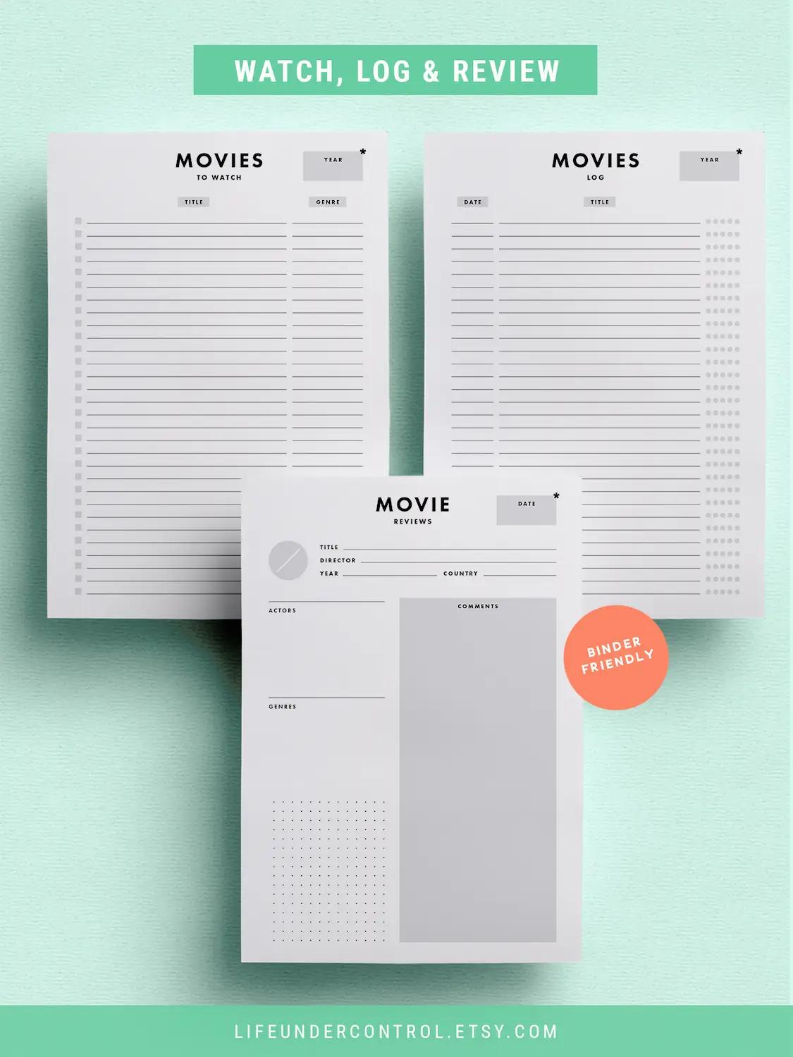 Easily keep track of your watched Movies & TV Shows with this complete template bundle. Plan your To-Watch list, record your favorites, review them, and much more.